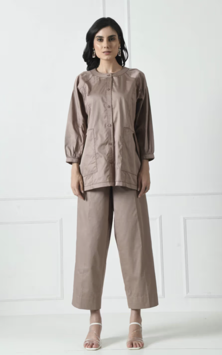 Excess takes a backseat as cleaner, more refined pieces come into focus. The Sunanta Madaan Taupe Luxury Cotton Co-Ord Set reflects this shift where minimal design meets elevated fabrication. Similarly, the Cider Linen Blend Pleated Cami Top with Straight-Leg Trousers introduces a contemporary, global take on summer dressing.